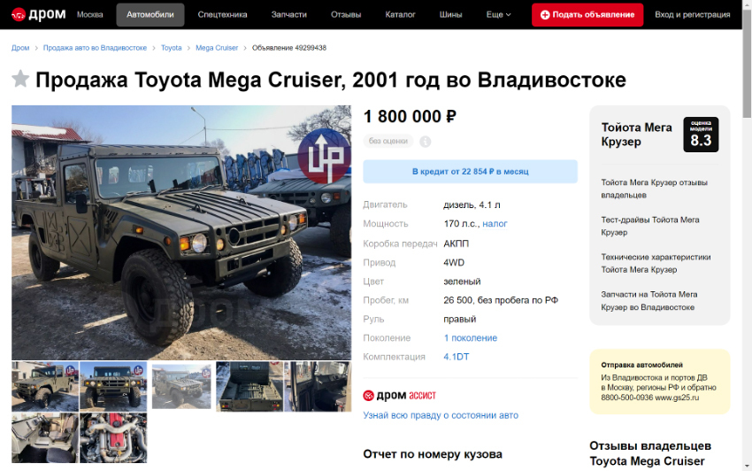 俄國中古車拍賣網站上出現疑似以Mega Cruiser作為名義販賣的高機動車(https://news.yahoo.co.jp/articles/977ca15281c62702b719de2b1ed6988a11e1142b/images/000)