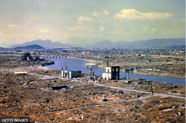 原子彈爆炸後,廣島一片廢墟。來源: https://www.bbc.com/zhongwen/trad/world-53713248