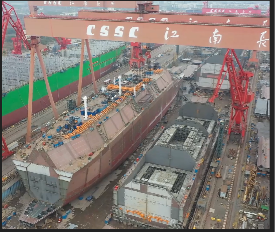 中國船艦產業的發展並非僅是工業生產的轉型,而是一種刻意的「軍民融合」(MCF)戰略實踐,民用船舶與軍用船艦之間的界線日益模糊。這種所謂的「雙重用途」策略,原本以商業為主的造船廠逐步導入軍工技術、人力與材料,形成一種可隨市場或戰略需求轉換用途的「雙重用途船廠」。例如,上海長興島與廣州龍穴島的造船設施,不僅同時生產全球最大級別的貨櫃輪,也建造中國海軍現役的驅逐艦與登陸艦。這種佈局在和平時期可依賴穩定的外國商業訂單維持產線,於國內經濟下行或地緣政治緊張時,又能迅速切換為戰艦生產基地。