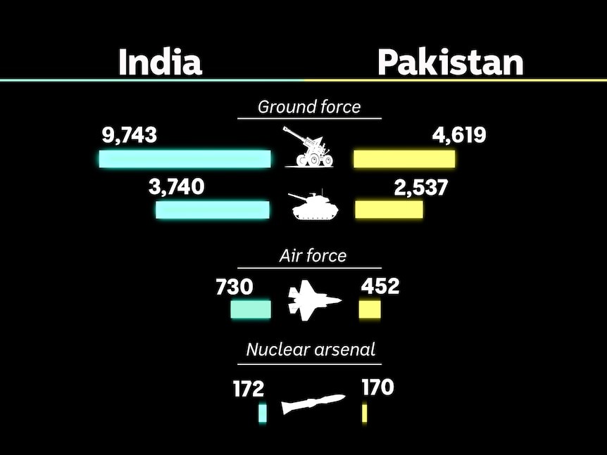 國際戰略研究所的數據顯示,印度的軍事實力超過巴基斯坦,但專家表示,兩國的武器能力旗鼓相當。(ABC 新聞:凱莉·西爾維斯特)