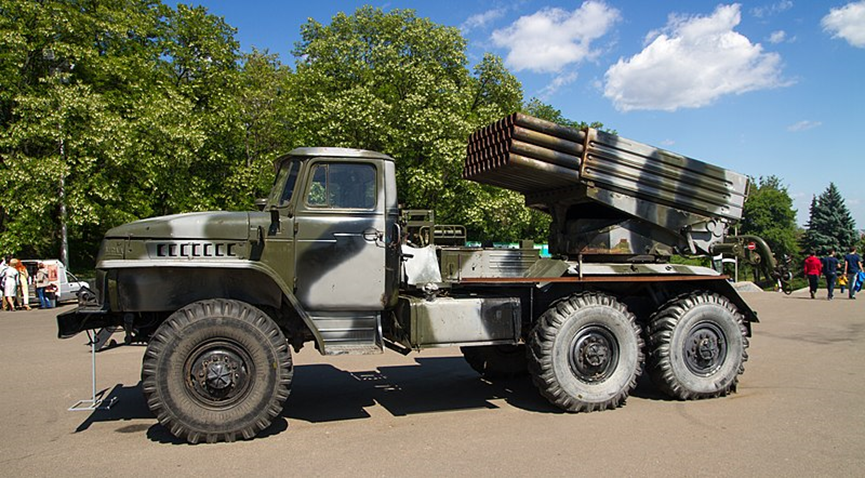 BM-21 Grad火箭砲。資料來源: https://commons.wikimedia.org/wiki/File:Russian_origin_military_BM-21_Grad_captured_by_Ukrainian_army_1.jpg