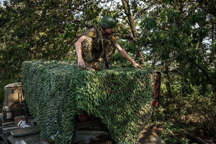 使用迷彩網進行偽裝的該旅士兵。資料來源: https://www.wsj.com/articles/this-60-year-old-soviet-rocket-launcher-fights-on-in-ukraine-c81690a9?mod=hp_lead_pos8