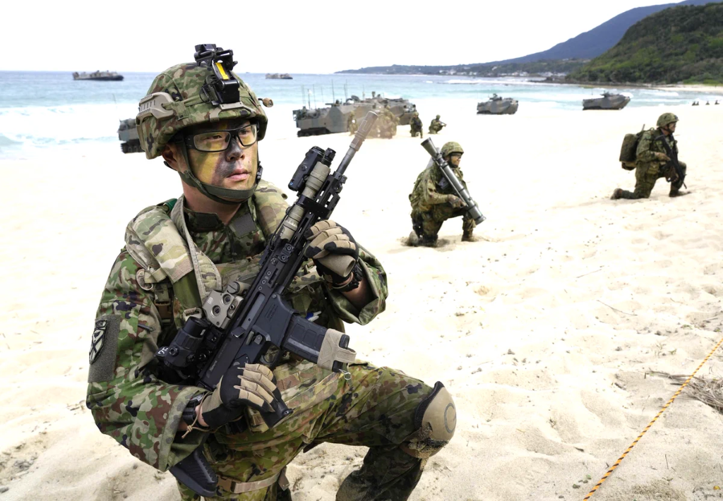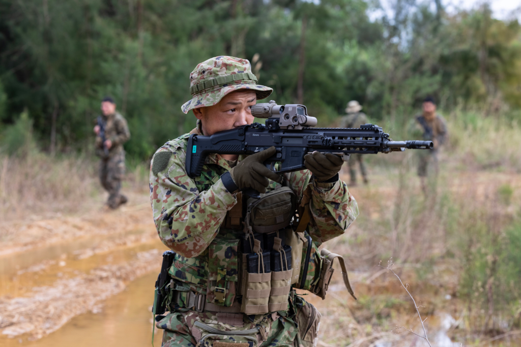 參與鐵拳23(Iron Fist 23)演習的水陸機動團隊員,同樣Eotech EXPS3-0瞄具、G45側翻鏡、Magpul RVG 前握把、Surefire m622u槍燈。(https://x.com/Archives_Japan/status/1631655174354915329)