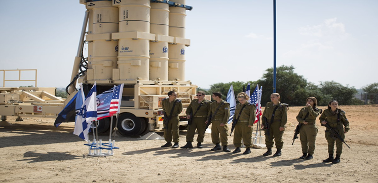 以色列士兵在「箭 II」飛彈系統旁等待時任美國國家安全顧問蘇珊‧賴斯抵達以色列裡雄萊錫安。資料來源: https://www.newsweek.com/israel-arrow-defense-missile-system-compared-iron-dome-1839750