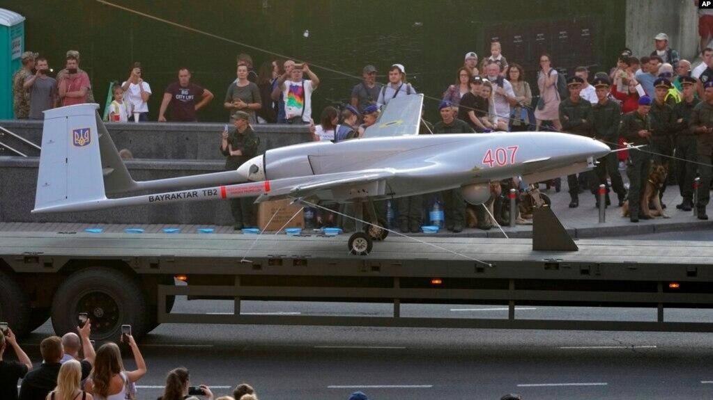 圖為2021年8月24日獨立日閱兵於基輔展出的空軍舊型TB2,可見其2片螺旋槳的外型